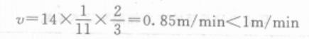 設(shè)卷?yè)P(yáng)機(jī)采用30KN慢速電動(dòng)卷?yè)P(yáng)機(jī),線速度為14m/min,布置在地面上。牽引滑車組采用5門,工作線數(shù)11,布置在網(wǎng)架支座軸線的延長(zhǎng)線上。鉤扎滑車組的卷?yè)P(yáng)機(jī)速度較快,為了降低牽引速度,在牽引滑車組與鉤扎滑車組之間,再增加單門滑車組,根據(jù)圖14-1中繞發(fā),可減速2/3.這樣,牽引速度可減為: