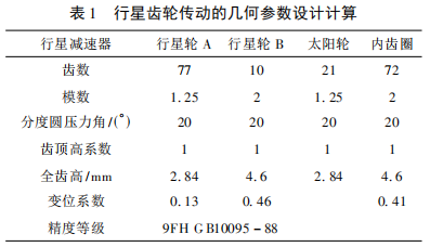 行星減速器的行星齒輪傳動幾何參數(shù)設計計算:考慮到實際工況,行星減速器的行星齒輪傳動幾何參數(shù)設計計算如下表所示