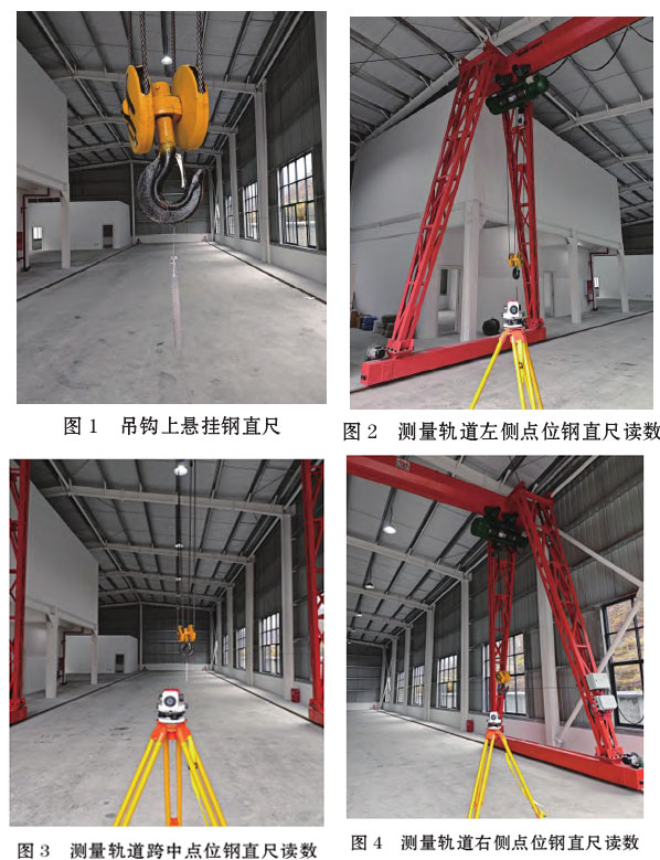 (3)將電動葫蘆運行至軌道右側(cè)(圖4),待鋼直尺靜止后,調(diào)整水準(zhǔn)儀目鏡,讀出目鏡中鋼直尺的刻度S3。