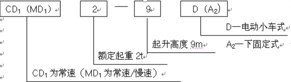 CD1 2-9D代表的是CD1型2噸9米運(yùn)行式(電動(dòng)小車式)電動(dòng)葫蘆