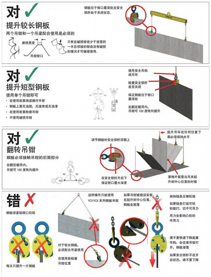 CDH型豎吊起重鉗適用于鋼板豎直吊裝,此種鋼板吊鉗采用首鋼低碳優(yōu)質合金鋼制造,載荷范圍為0-10噸。它只能同時吊裝一塊鋼板,嚴禁層疊吊裝。吊鉗起 吊時必須將拉環(huán)手柄向上,以使彈簧拉緊,卸荷時拉環(huán)手柄向下,彈簧放松后簽字和鋼板才能分離,且吊裝過程中不得碰撞被吊物,嚴禁超載使用。帶彈簧鎖無作業(yè) 狀態(tài)下,鎖具自然加緊,吊上物體夾力成比例增強。本產(chǎn)品嚴格按國家3包執(zhí)行,產(chǎn)品質量由中國人民保險公司(PICC)承保,請放心使用。